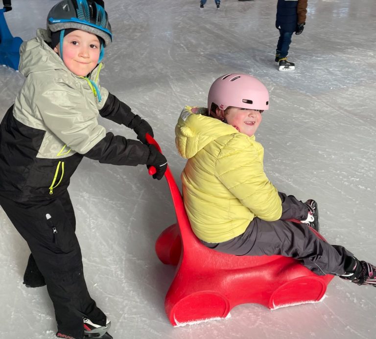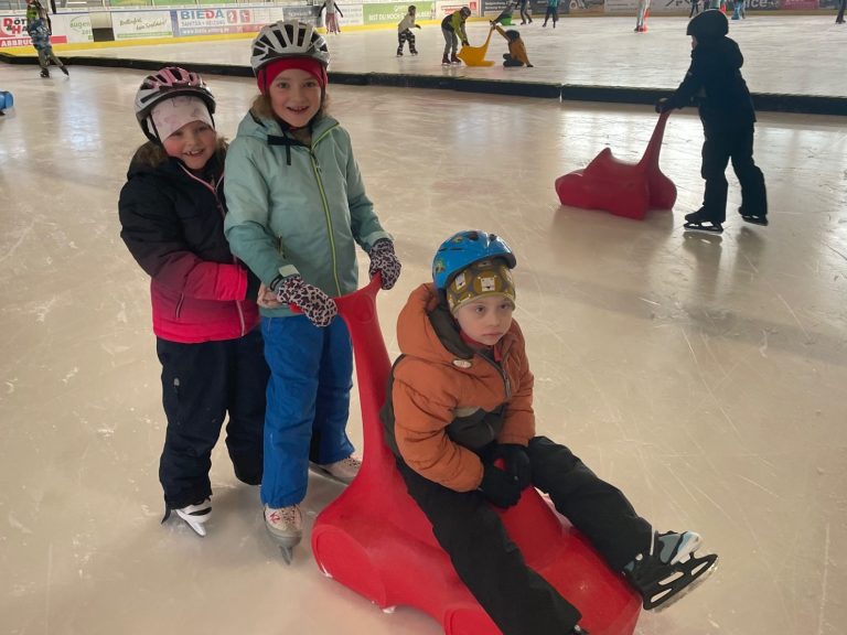 Im Januar und Februar besucht die Klasse 2a mit ihrer Partnerklasse zusammen das Eisstadion. Insgesamt sechsmal jeweils über eine Stunde üben die Kinder fleißig das Eislaufen. Es macht allen viel Spaß und mithilfe der tollen Laufhilfen können alle Kinder daran teilnehmen. Ein tolles inklusives Erlebnis!