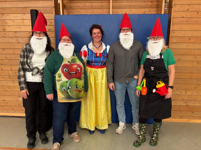 Die Vielfalt der Kostüme war beeindruckend: Von Prinzessinnen über Superhelden bis hin zu Dinosauriern war alles vertreten. Auch das Schulleitungsteam sowie Teile des Kollegiums ließen sich den Spaß nicht entgehen und erschienen passend verkleidet als Schneewittchen und die (fast) sieben Zwerge.